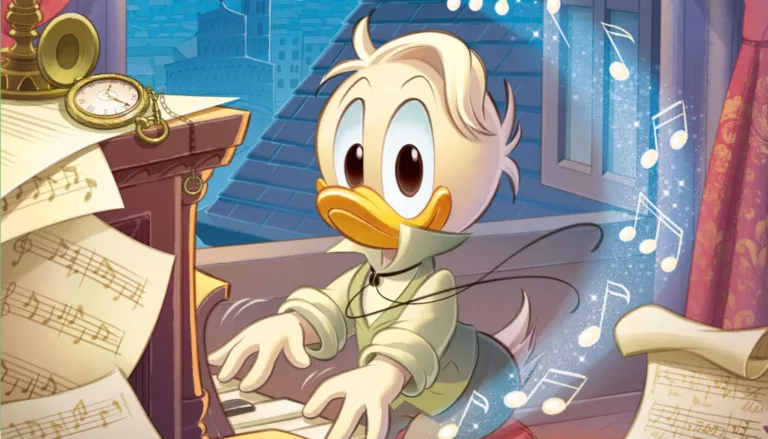 Il racconto inedito, scritto da Augusto Macchetto con i disegni di Michela Frare e i colori di Andrea Cagol, vede tra i protagonisti insieme a Topolino anche Andrea Vocelli, versione in chiave Disney di Andrea Bocelli, che quest’anno celebra un altro importante anniversario: i suoi primi 30 anni di carriera. Con Topolino, il giovane Vocelli, appassionato di bel canto, si avventura in un viaggio nel tempo alla ricerca delle origini del maestro Puccini, desideroso di scoprire il segreto del suo talento.