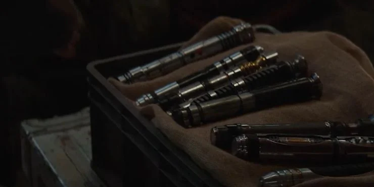 La base del Sentiero su Jabiim contiene ninnoli di Jedi presumibilmente deceduti, sia le loro spade laser che le loro vesti. Questi devono essere stati recuperati lungo la strada come segni di ricordo per gli amici caduti, o abbandonati dai Jedi che hanno rinunciato alle loro identità per nascondersi dall’Impero. La selezione di spade laser non contiene impugnature ovviamente riconoscibili dalla tradizione consolidata di Star Wars.