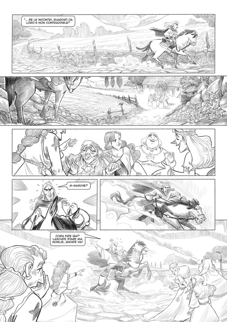 Senza raccontare altro della storia per non rovinarvi la sorpresa, c’è da dire che il lavoro fatto da Francesco nel mescolare elementi del folklore piemontese ad altri tipicamente fantasy in senso più lato è davvero equilibrato. Ne risulta una storia molto ben costruita, mai banale, ma anzi riesce a tenere il lettore sulle spine fino all’ultima bellissima e straziante tavola.