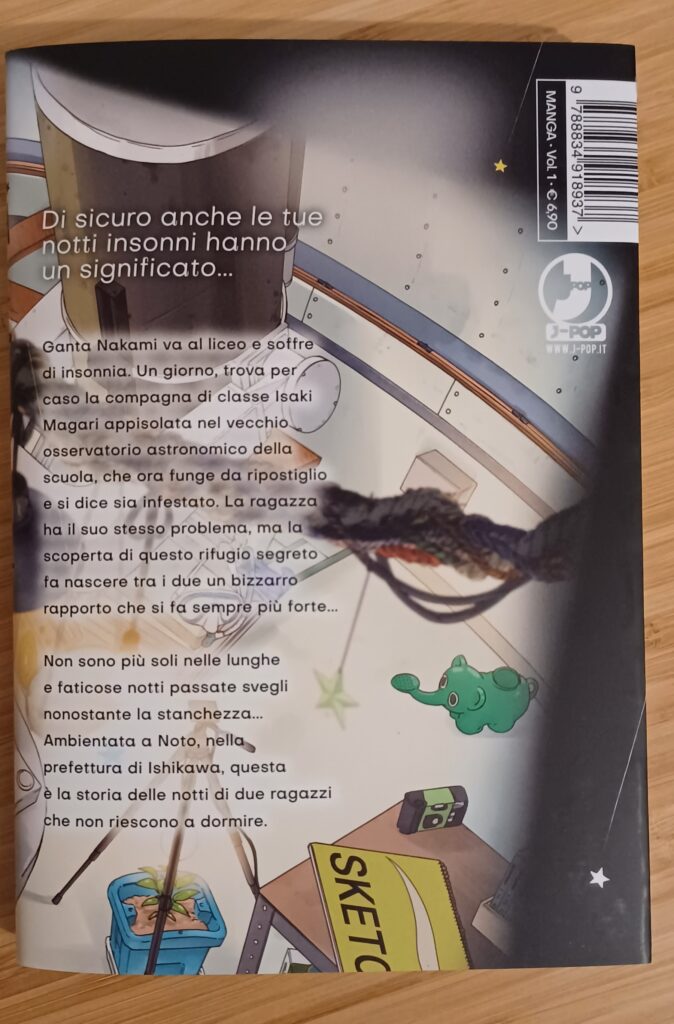 Un dettaglio interessante è che ogni capitolo ha il nome di una costellazione, ma non i nomi che siamo abituati a conoscere (che fanno da sottotitolo), bensì quelli con cui sono conosciute in Giappone. In conclusione, il primo volume di Insomniacs After School è una lettura molto piacevole e rilassante, che sa far interessare il lettore alla storia dei due personaggi anche se ancora non si capisce molto di dove voglia andare davvero a parare. Lo consiglierei soprattutto a chi è in cerca di un romance e di uno slice of life carino da leggere, con una premessa diversa dalle solite e degli ottimi disegni.