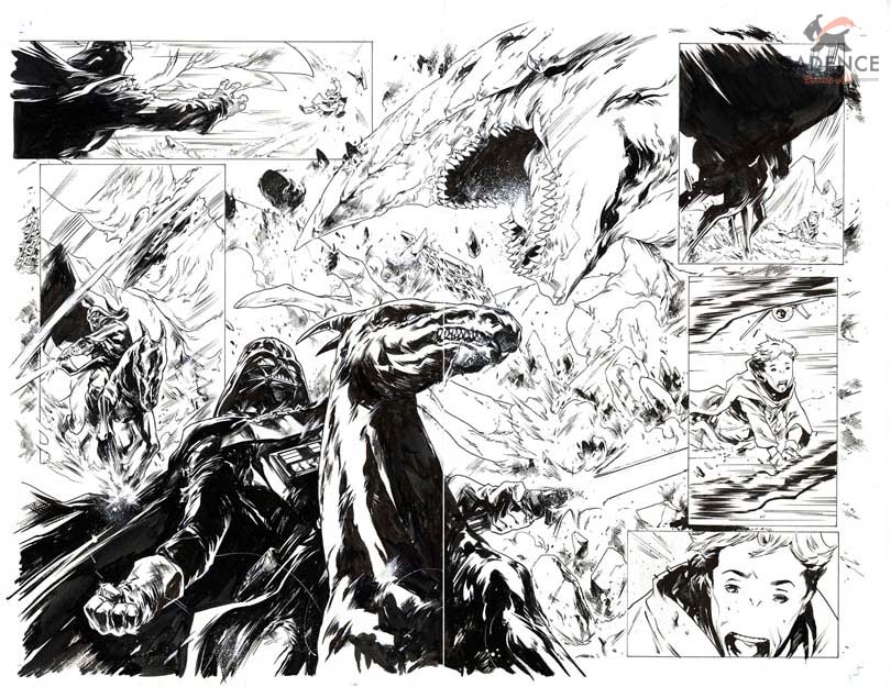 Davvero molto suggestiva è la storia Dark Visions 1, dove Darth è visto da una popolazione aliena come un dio nero venuto dal cielo a liberarla da un enorme mostro che da tempo immemore costringe gli abitanti di quel pianeta a vivere nel sottosuolo.
