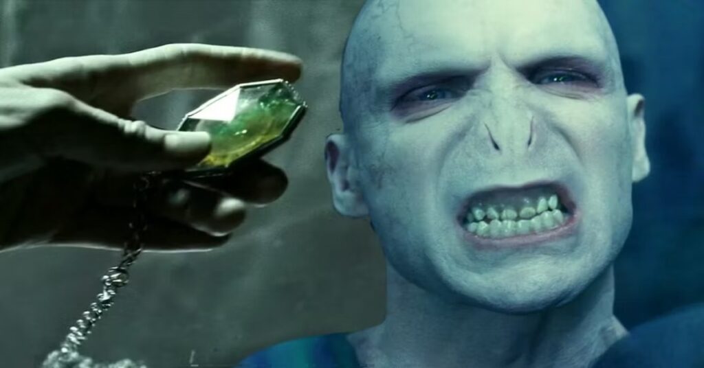 Decise quindi di visitare la grotta in riva al mare e di controllare il medaglione, scoprendo con rabbia che anche quest’ultimo era sparito. Con l’omicidio nel cuore, Voldemort decise di dirigersi al Castello di Hogwarts, essendo stato convocato da Alecto Carrow e sapendo quindi che era l’attuale luogo di Harry Potter.