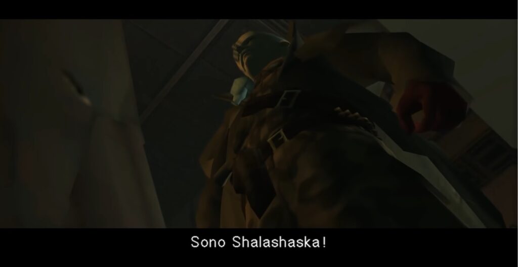 Vi ricordate come si è concluso Metal Gear Solid? La chiamata dopo i titoli di coda passa alla storia come l’entrata in scena di Ocelot in questo capitolo. Assieme a Solid Snake, sulla nave, si infiltra anche il pistolero Shalashaska incaricato a consegnare il Metal Gear Ray ai LA-LI-LU-LE-LO. Alla sola vista di Snake, tuttavia, il braccio impiantato prende il possesso e a parlare è Liquid; il braccio, infatti, che Ocelot si fa impiantare è quello di Liquid e, per motivi che capiremo più avanti, ne rimarrà impossessato.