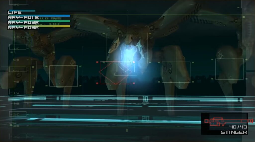 Una delle boss fight più impegnative e durature del gioco è quella contro i Metal Gear Ray. Siamo all’interno del nuovo Metal Gear e orde di Ray sono pronti ad eliminarci. Inizia una lotta spietata tra Raiden e ondate di Ray composti da 3 Metal Gear per ondata. Armati di missili Stinger dobbiamo distruggere i mecha e trovare la combinazione giusta per poter sprecare meno munizioni ma essere, allo stesso tempo, efficaci.