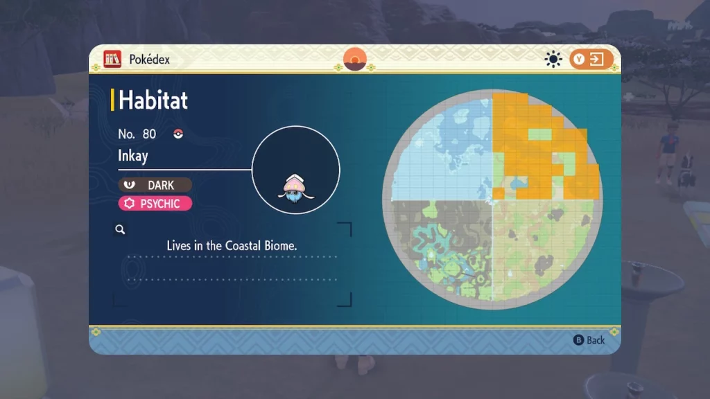 Inkay si trova nella sezione del bioma costiero del Bioterarium, che è la sezione nord-orientale della nuova area del DLC di Pokémon Scarlatto e Violetto. Anche se compaiono praticamente ovunque in quest’area, i posti migliori in cui cercarli sono le spiagge o direttamente nell’acqua.