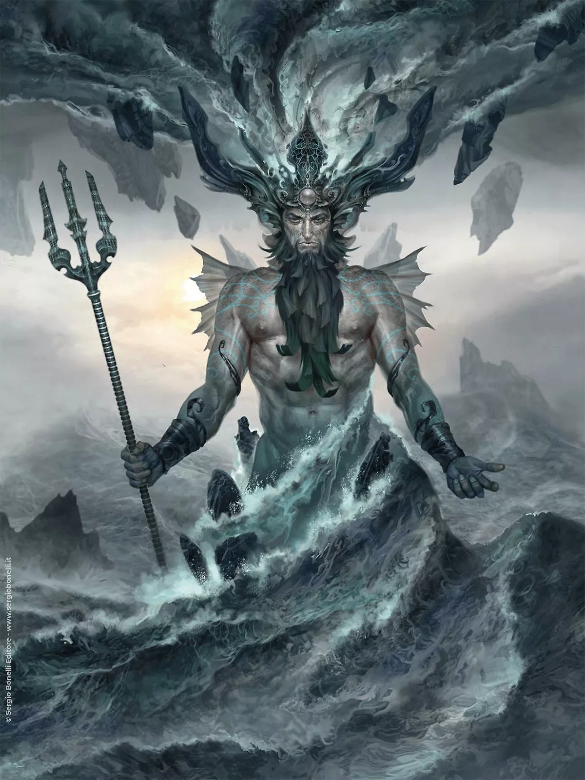 «È stato naturale per me alternare luce e ombra, disegnando l’Odissea. La brezza di incanti lontani cavalca il mare, quello stesso mare che ho voluto trasformare in un luogo materico con onde più simili a sculture di pietra, metafora di quel muro d’acqua che l’irato Poseidone ha frapposto tra gli uomini e la loro casa lontana».