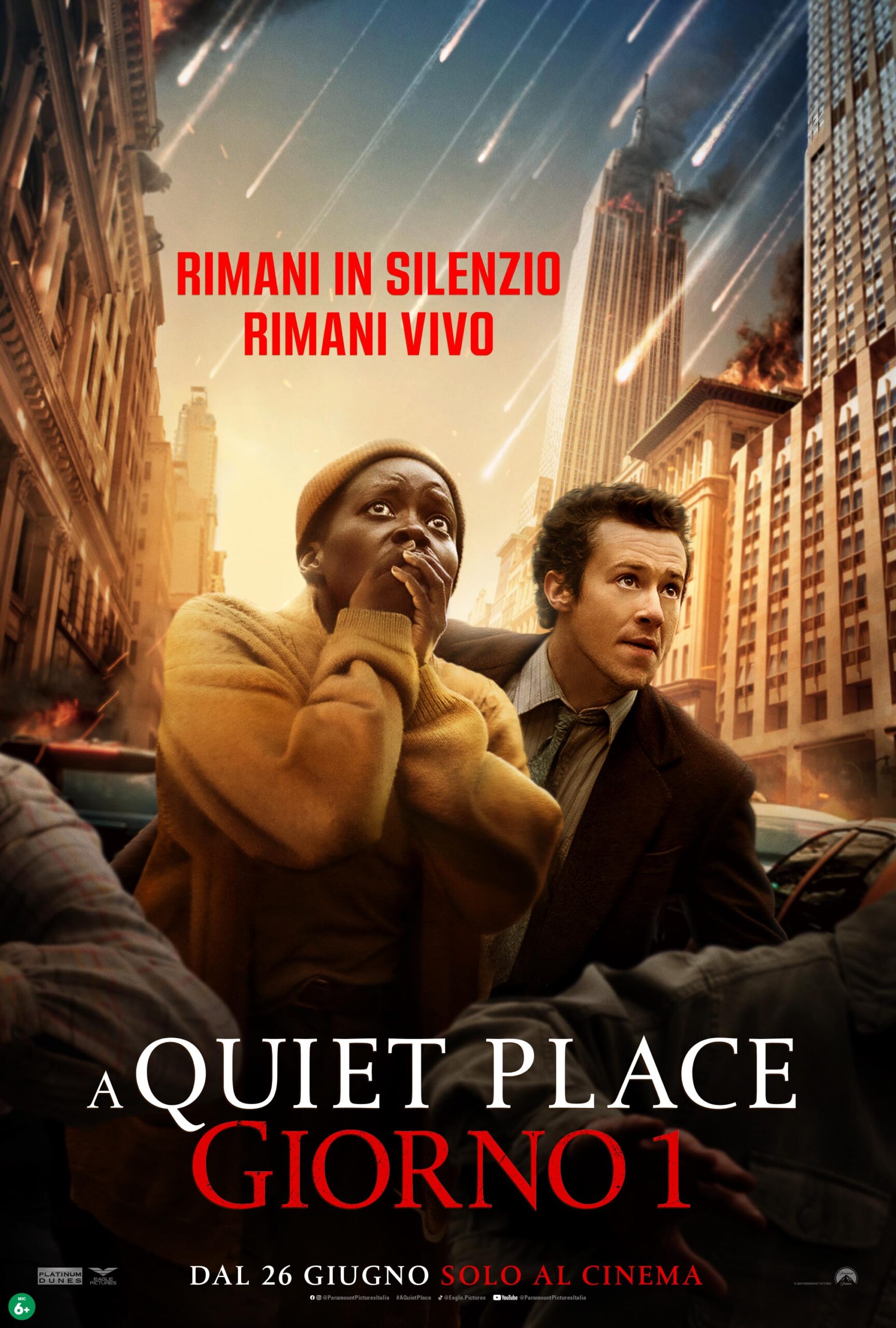 Pochissimi minuti fa, Paramount Pictures Italia ha diffuso in rete il trailer ufficiale di A Quite Place: Giorno 1, l’attesissimo nuovo film del franchise di A Quite Place che funge da prequel e ci racconterà le prime fasi dell’invasione. Il film arriverà il 26 giugno nelle sale italiane, distribuito da Eagle Pictures.