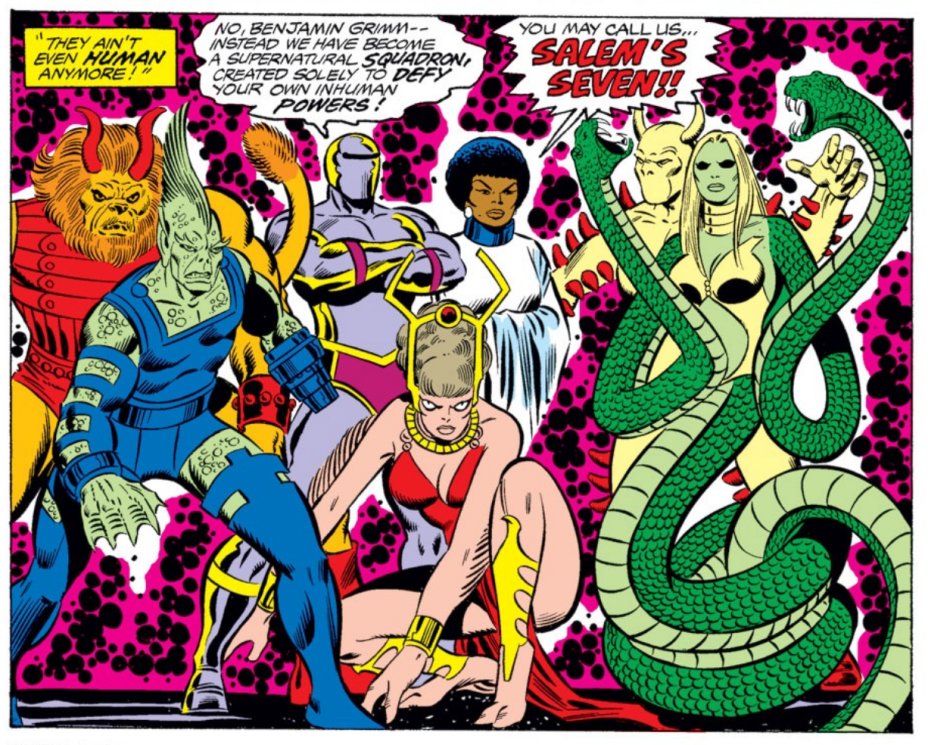 Anni dopo, quando i Quattro tornarono con Agatha a New Salem nel Fantastic Four Annual #14 del 1979, i Sette di Salem misero in trance i New Salemiti e tentarono di sacrificare i Quattro per riportare lo spirito del loro padrone nel loro regno. Con Mister Fantastic, la Donna Invisibile, la Torcia Umana e la Cosa incapacitati dall’incantesimo di controllo mentale di Scratch, Agatha liberò i Quattro, ritirò i poteri dei Sette e li rimandò a New Salem.