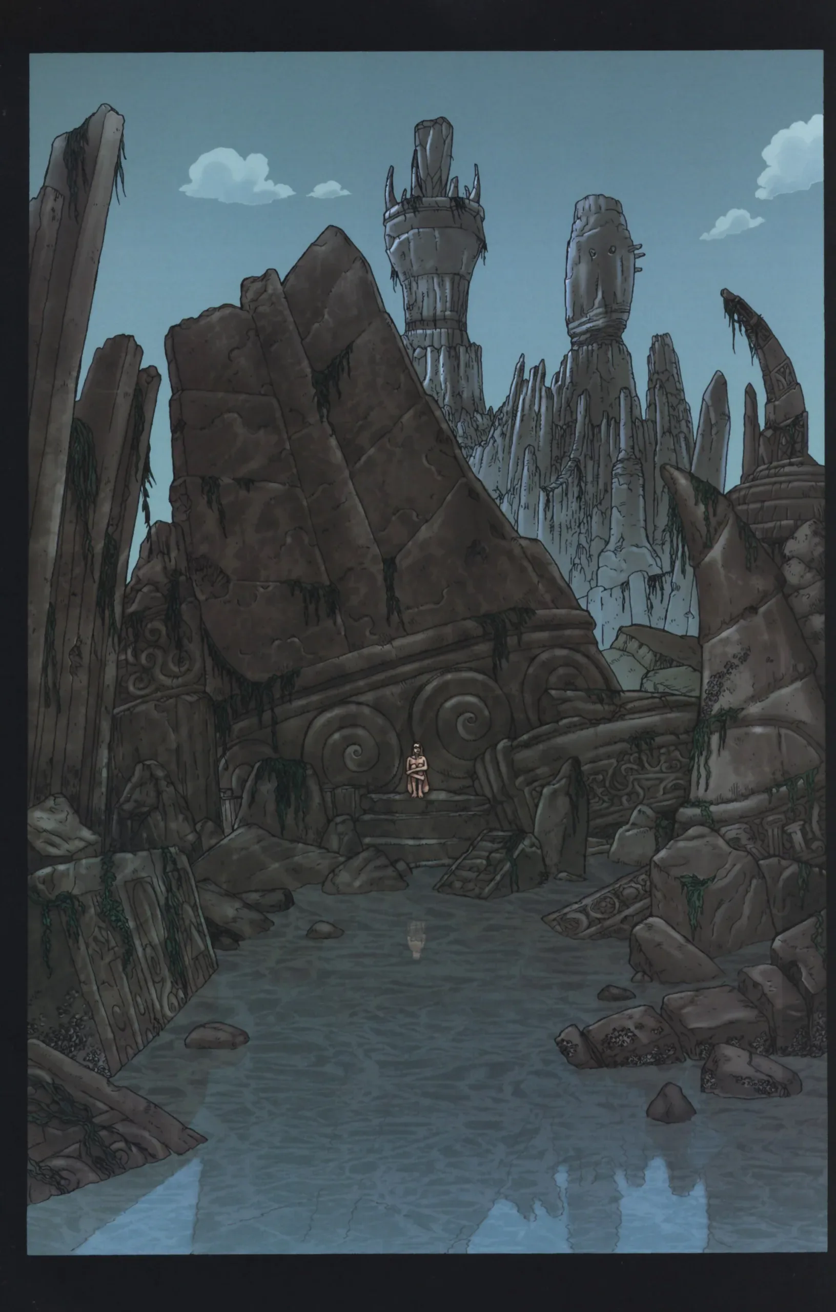 L’orrore cosmico di Moore si sviluppa in realtà in diverse storie: Il Cortile e Neonomicon, contenute in questo primo volume, e Providence, contenuta per intero nel secondo volume omonimo e più impegnativa, tanto per la mole del volume che per la storia in sé. Questo primo volume ci introduce all’universo creato da Moore proprio partendo dalla già menzionata “Il cortile”, nata da un racconto in prosa di Moore e adattata da Antony Johnston per i disegni di Jacen Burrows, che accompagnerà poi Moore alle tavole sia in Neonomicon che in Providence.