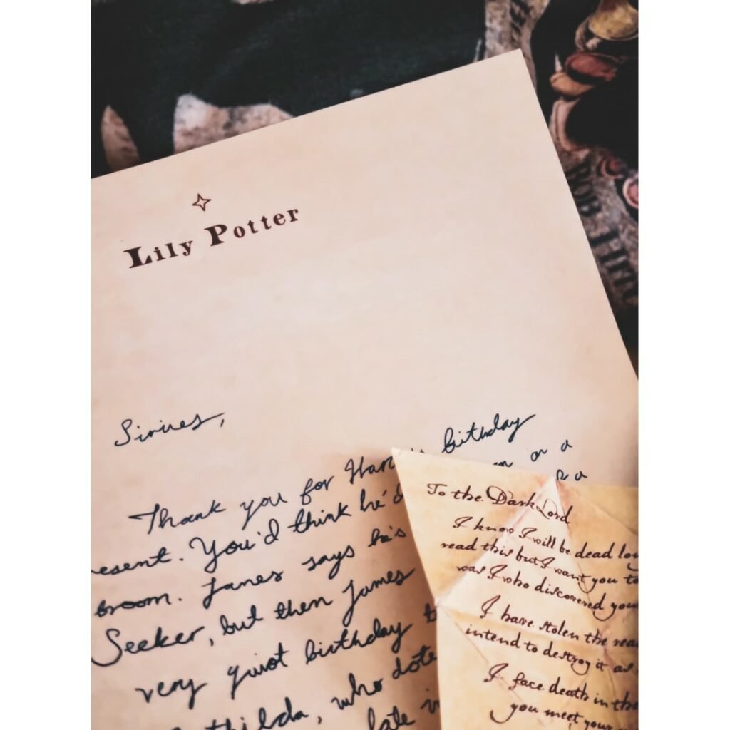 La lettera di Lily a Sirius: In I Doni della morte, all’inizio del capitolo 10, “Il racconto di Kreacher”, Harry entra nella stanza di Sirius e, dopo aver frugato un pò in giro, trova la prima pagina di una lettera di sua madre a Sirius e i resti di una fotografia scattata subito dopo Il suo primo compleanno nel 1981.