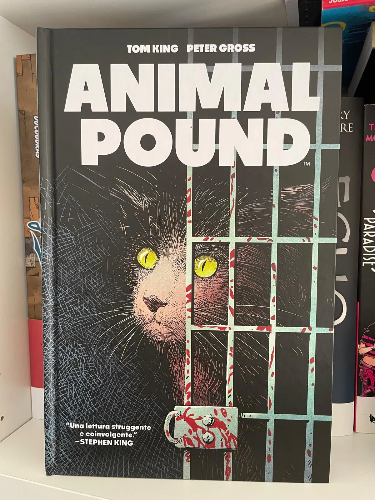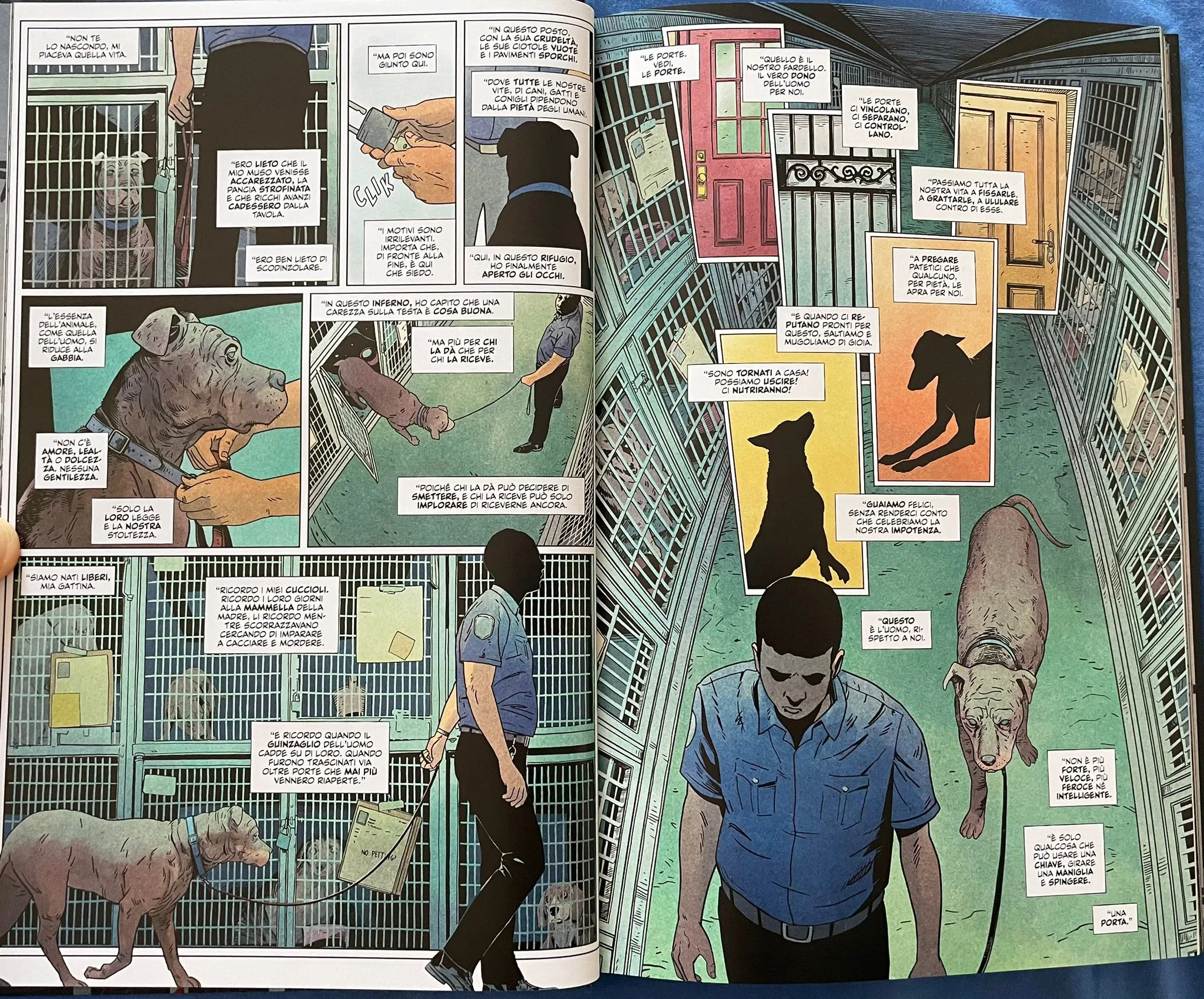 La storia raccontata in Animal Pound copre un lungo lasso di tempo, andando a definire una struttura circolare, simile ancora una volta al romanzo originale. Si parte con la rivoluzione, si raccontano le prime fasi della nuova società, nascono le prime frizioni e problematiche e tutto inizia a sgretolarsi per tornare a una situazione molto simile a quella iniziale. Tom King riesce a caratterizzare in maniera perfetta cani, gatti e conigli, facendo in modo che restino sempre molto verosimili alla loro natura sia nel comportamento che nelle scelte che compiono nel corso della storia. Merito anche del tratto molto realistico di Peter Gross e dei colori di Tamra Bonvillain, che rendono ogni animale ben riconoscibile e diverso dagli altri. Questo consente ai lettori di empatizzare ancora di più con la storia, soprattutto per chi ha un animale domestico.