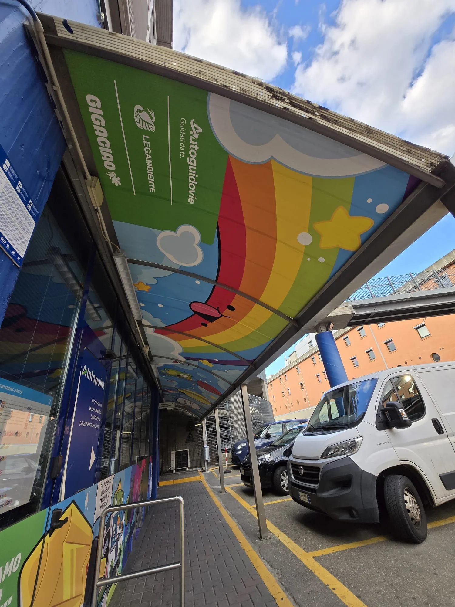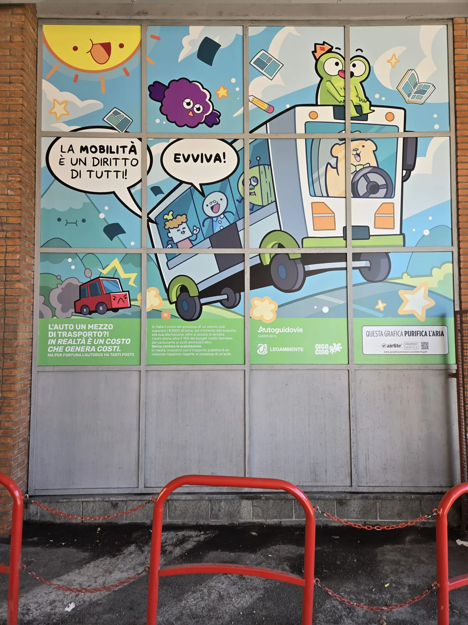 Graphic Service, azienda leader nella produzione di materiali di visual communication, ha ingegnerizzato un sistema di applicazione di Airlite sui materiali di comunicazione OOH (ad esempio: pannelli, vetrofanie, visual, ecc…) e per Autoguidovie ha realizzato le grafiche dell’autostazione di Pavia utilizzando questa innovativa tecnologia, trasformandola in un polmone che migliora la qualità dell’aria.