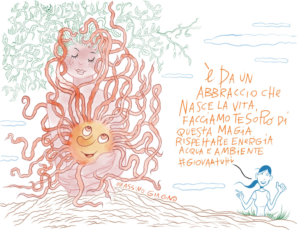 Rispettare energia, acqua e ambiente #GIOVAATUTTI: è questo il nome del progetto di A2A per il Jova Beach Party 2022, che ha preso il via sabato 2 luglio da Lignano Sabbiadoro e si concluderà il 10 settembre a Bresso. La Life Company – che si prende cura della vita delle persone occupandosi di energia, acqua e ambiente – desidera dare il proprio contributo per diffondere, in tutte le 12 tappe della festa musicale di Jovanotti, una cultura della sostenibilità grazie ad Azzurra, l’inedito personaggio a fumetti che vuole dare voce alla Gen-Z, una generazione sensibile alle tematiche ambientali e desiderosa di salvaguardare il Pianeta. Giovane, ironica e schietta, Azzurra è la protagonista di una serie di vignette caratterizzate da un tono di voce fresco e scherzoso, a volte un po’ pungente, che promuovono pratiche di sostenibilità virtuose e concrete, attuabili da chiunque nel quotidiano.