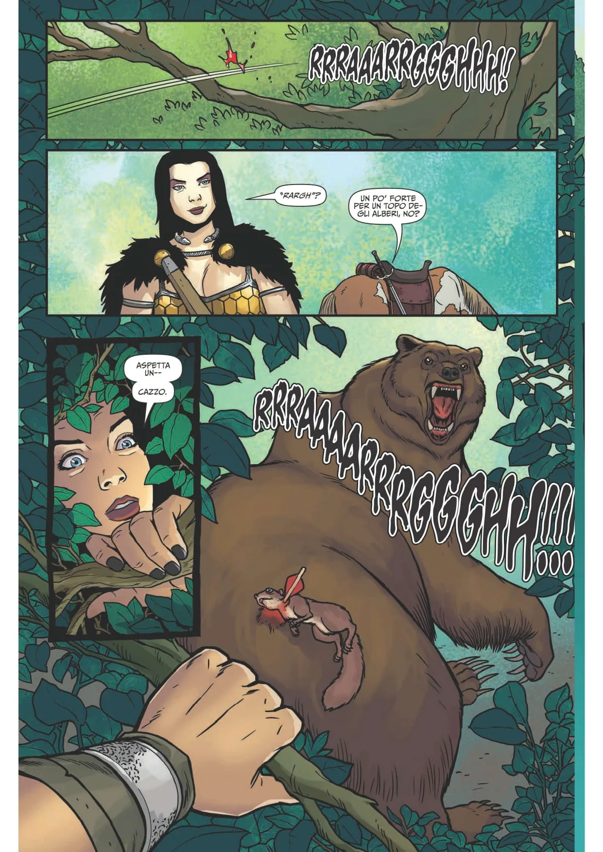 Tra risse, furti maldestri e situazioni sempre più assurde, Babs si trova ad affrontare nemici di ogni genere e scala: una banda di mezzuomini disastrati guidati da un orco incel, una nave carica di elfi erotomani e un gruppo di cavalieri “troppo puri per essere veri”, pronti a predicare dio, patria e famiglia mentre sfruttano senza scrupoli i poveri abitanti dei villaggi. Un mondo fantasy che diventa specchio deformante, ma fin troppo riconoscibile, del contemporaneo.