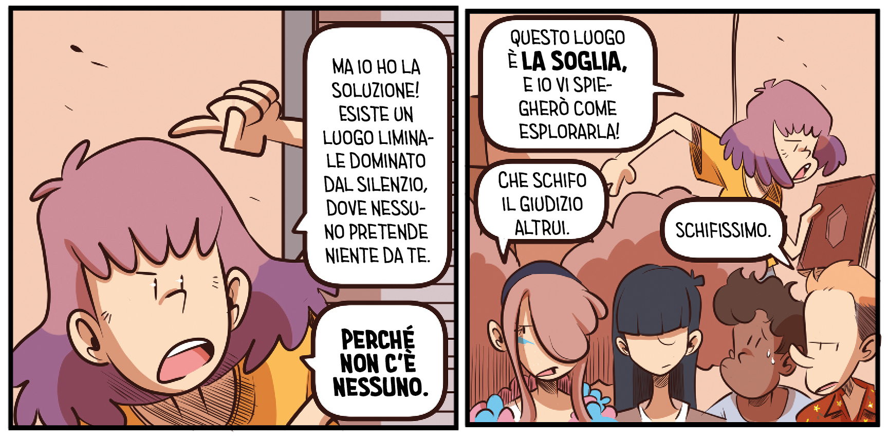 Esiste un luogo che sarebbe meglio non cercare mai: si chiama la Soglia, e questa è la storia di come un gruppo di amici lo ha trovato. Un mistero che parte da una vecchia leggenda e che può essere risolto solo in una Escape Room. AlbHey Longo e Claudio Cicciarelli raccontano l’incrollabile amicizia tra veri nerd e una sorprendente metafora dell’ansia vissuta dai più giovani.