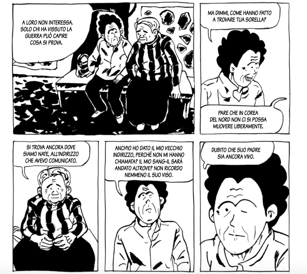 Dal 1953, la Corea è stata divisa in due paesi: la Corea del Sud e la Repubblica Popolare Democratica. L’autrice coreana Keum Suk Gendry-Kim, ispirandosi alla propria vicenda famigliare, racconta la straziante storia delle centinaia di migliaia di famiglie che sono state separate e del dolore lacerante del non sapere dove siano finiti, se siano ancora vivi, i propri affetti più cari.