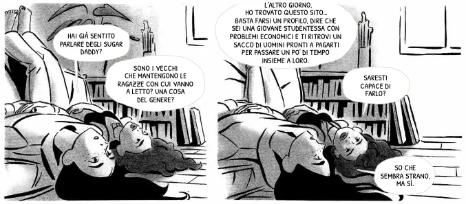 Raphaelle arriva a Parigi per studiare architettura, ma ben presto si rende conto di non poter arrivare alla fine del mese con i soldi che i suoi genitori le possono dare, per questo inizia a frequentare un sito dove uomini cercano ragazze da incontrare in cambio di denaro. Sixtine Dano realizza un graphic novel d’esordio che in Francia è stato un successo di pubblico e critica, liberamente ispirato alle testimonianze di persone che sono state escort oppure clienti. Una storia intima che esplora femminilità, indipendenza e rapporti di potere nella nostra società.