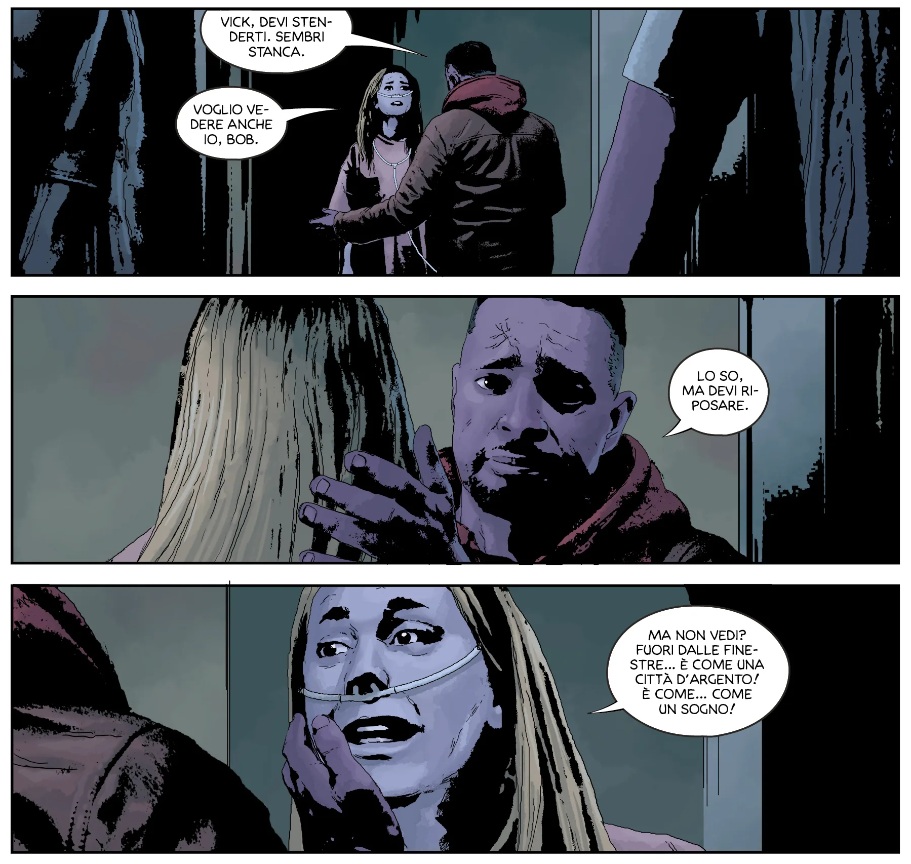 L’epopea del Mito del frutteto di ossa, l’universo narrativo horror creato da Jeff Lemire e Andrea Sorrentino, si chiude con questo corposo volume, che vede protagonisti sette abitanti di un palazzo di Toronto, ma soprattutto il luogo stesso, che nasconde segreti e rituali secolari. Quando uno degli inquilini muore in circostanze misteriose, inquietanti visioni iniziano a manifestarsi e l’unica via di uscita sembra essere un oscuro passaggio scavato nell’appartamento del morto. Questo percorso però non porterà alla salvezza, ma ad affrontare i demoni di ognuno di loro, mentre il male che assedia il nostro mondo cerca una via per emergere.