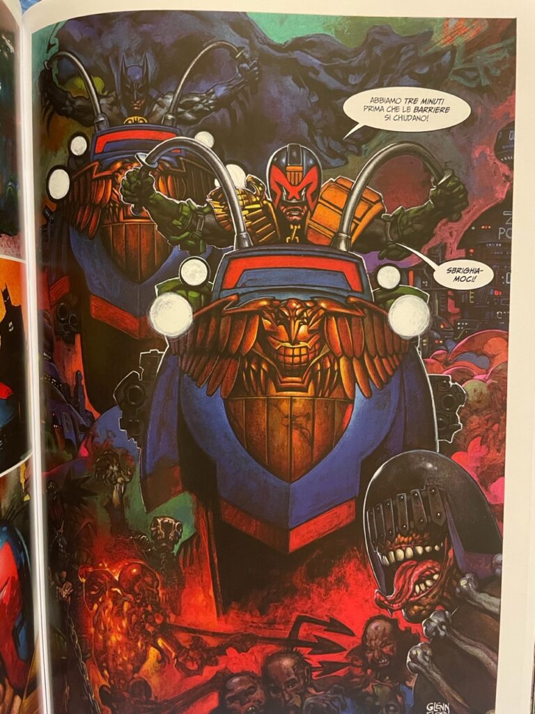 Questa seconda storia presenta un disegno molto più classico rispetto alla precedente e una trama piuttosto semplice che ruota intorno a un colpo di scena centrale. La parte più interessante è sicuramente quella iniziale, dove vediamo lo scontro violento tra Batman e Dredd, e la vicenda in sé mostra un lato inedito del giudice, che forse non è solo il soldato ligio al dovere che pensavamo.
