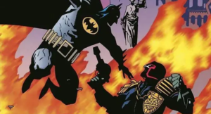 Batman e il Giudice Dredd: due personaggi che hanno fatto della lotta al crimine la loro ragione di vita. Il primo combatte in una Gotham City a noi quasi contemporanea, il secondo nella futuristica Mega-City One. Ma se Bruce Wayne si è imposto un limite da non superare nella sua caccia ai criminali, Dredd è invece l’emblema della società del suo tempo, fredda e spietata.