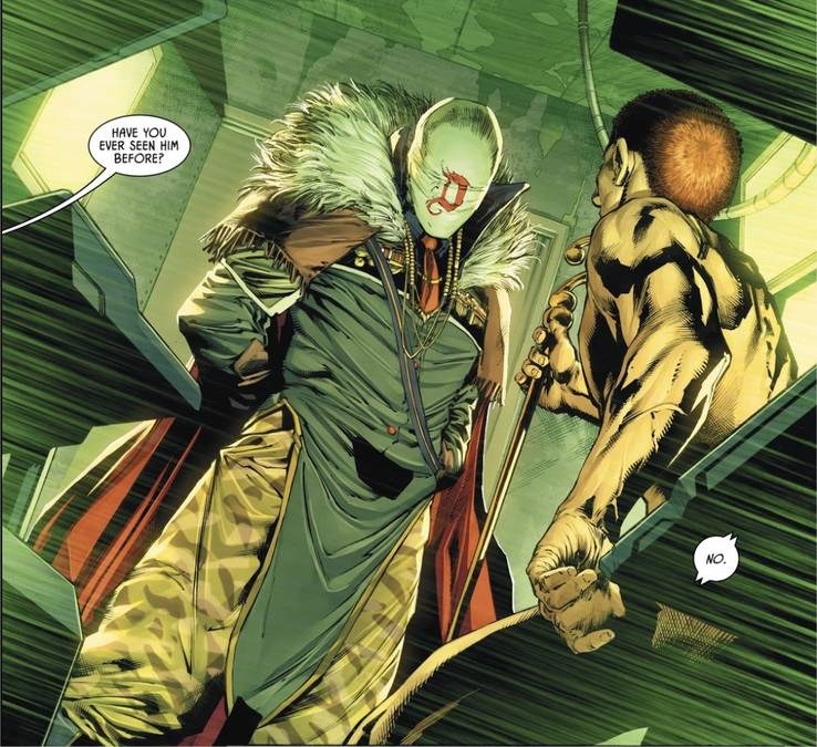 Il suo costume è composto da una mimetica da combattimento, stivali da pirata, un’uniforme militare coperta da medaglie che indossa sopra una cravatta rossa e una camicia con collo alto. Inoltre, ha un mantello rosso e un colletto grande e vistoso. E se tutto ciò non bastasse, la sua testa è coperta da una maschera bianca con una “D” rossa dipinta sul viso. In qualche modo, questo costume è un mix di stili completamente specifico, che non ci dice nulla del personaggio oltre a suggerire vagamente uno sfondo militare e un tocco per il drammatico. Per quanto ne sappiamo, questo potrebbe essere solo un finto costume pensato per ingannare Batman. Ad ogni modo, il Designer ha fatto una certa prima impressione.