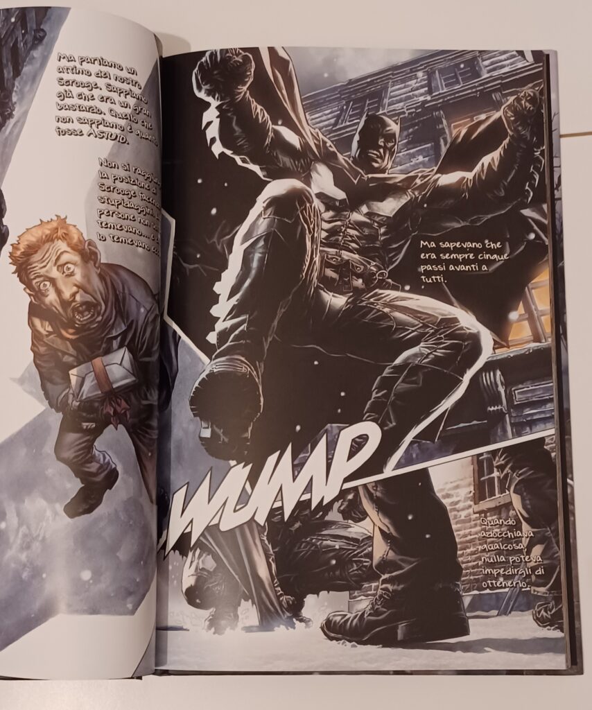 Il “Canto di Natale” di Charles Dickens, diventa il centro ispiratore di un’opera diversa dalle solite nella quale, l’universo di Batman, tende ad una sua evoluzione naturale. La figura del Cavaliere Oscuro, senza essere stravolta, viene posta all’interno di un processo naturale di cambiamento, che rende l’intera storia una piacevole sorpresa. Il tutto, corredato da disegni che da soli, valgono l’intero prezzo di copertina.