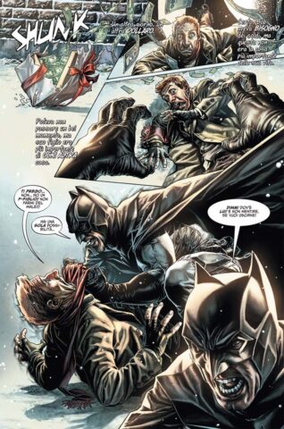 Bermejo trasforma Batman in un nuovo Scrooge, il cavaliere oscuro è di nuovo a caccia del Joker e per riuscire a catturare il suo nemico tormenta il povero Bob, piccolo criminale e padre single di un bambino di nome Tim. In questa storia il personaggio di Batman è molto indurito dalla sua stessa guerra contro il crimine, oscuro come non mai. L’avventura sembra venir narrata dallo stesso Bob, che fa riferimento a Batman chiamandolo più volte Scrooge. A fare la parte di Jacob Marley, il socio d’affari di Scrooge nel racconto di Dickens, abbiamo il secondo Robin Jason Tood ucciso dal Joker in “Morte in Famiglia“.