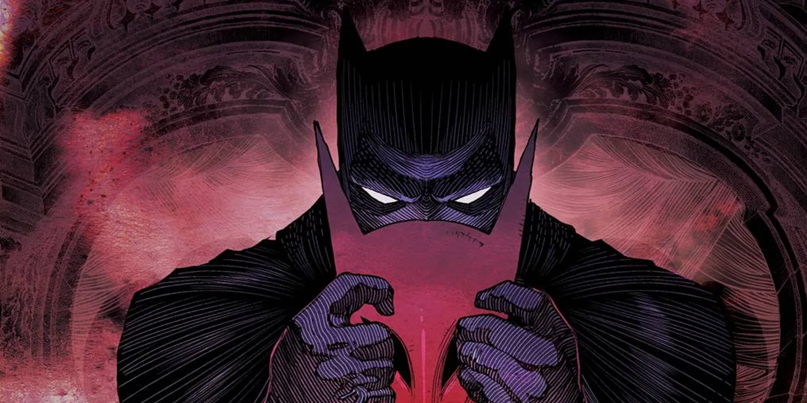 La copertina raffigura Batman con in mano un’inquietante maschera rossa mentre mani spettrali lo afferrano verso l’alto. Inoltre, è presente un nuovo logo e un nuovo bordo realizzati da Darran Robinson, che ha disegnato una grande varietà di loghi per la DC, da Batman Beyond: Neo-Year a Supergirl: Woman of Tomorrow. Robinson ha twittato di essere estremamente orgoglioso del nuovo design della copertina e ha anche condiviso una versione alternativa renderizzata.