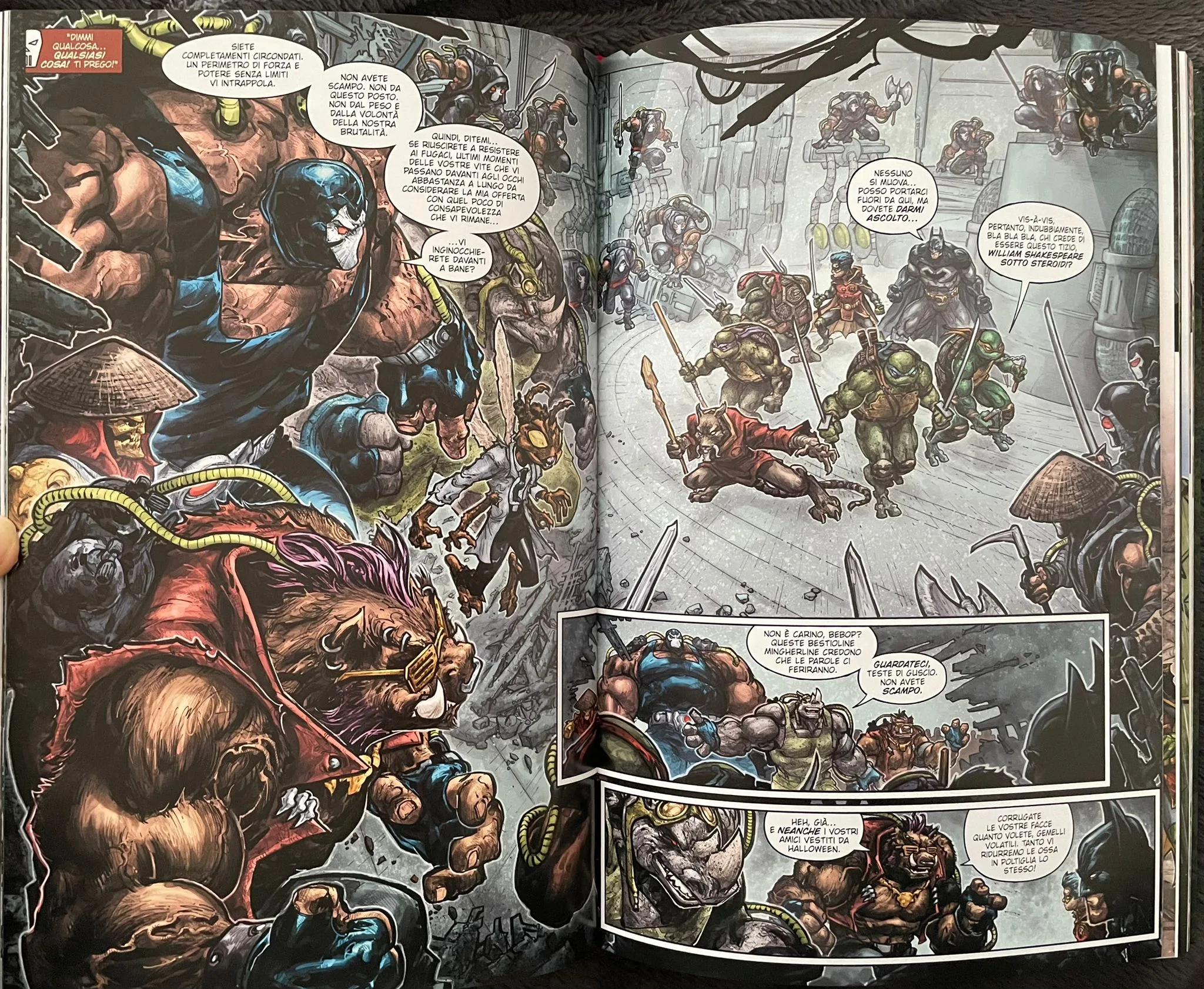 Tirando le somme, Batman/Teenage Mutant Ninja Turtles è una trilogia davvero imperdibile se siete fan di uno dei personaggi o di entrambi gli universi narrativi. Le storie sono un crescendo di emozioni e, pur avendo trame separate, rendono meglio se lette una di seguito all’altra perché il rapporto tra i protagonisti va man mano evolvendo lungo tutta la narrazione. In fondo, andando al di sotto delle tante scene action, sono tre racconti che parlano di legami familiari e del concetto di “famiglia”, che i personaggi incarnano da sempre nelle loro storie, anche se in maniera diversa. Un’operazione quindi perfettamente riuscita e proposta nell’edizione definitiva da Panini Comics in un volume cartonato di ben 576 pagine, che contiene più di 100 pagine di approfondimenti, tra copertine alternative, tavole a matita, illustrazioni di Freddie E. Williams II e Kevin Eastman, retroscena sulla loro collaborazione e tantissimo altro.