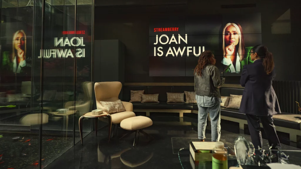 La sua vita cambia completamente quando sulla piattaforma on demand Streamberry, Joan e il suo partner iniziano a guardare una serie dal titolo Joan Is Awful, che altro non è che la vita stessa di Joan Tait. La donna si ritrova così a visionare sullo schermo le sue ultime ore della giornata, entro una serie che non nasconde i pensieri di Joan ma li mette in mostra, narrando l’aspetto più “malvagio” della donna. La serie andrà a rovinarla, perché da questo momento perderà il proprio lavoro, il proprio fidanzato (che non amava più) e ogni sua libertà di vivere. Tutto ciò che vivrà, d’ora in poi, finirà sulla serie Streamberry, dove lei è interpretata dalla star del cinema Salma Hayek.