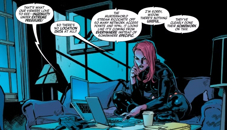 Murderworld: Spider-Man #1 (di Jim Zub, Farid Karami, Chris Sotomayor e Cory Petit di VC) trova i suoi concorrenti di fronte a nuove minacce dopo aver affrontato i Vendicatori meccanici del numero precedente. Questa volta, copie robotiche di vari Eroi Ragno provenienti da tutto il multiverso sono pronte a uccidere i pochi sfortunati che si sono fatti strada nella gara omicida di Arcade, il tutto per il divertimento di coloro che guardano da lontano. Sfortunatamente per Arcade, questo include Vedova Nera, che è sulla buona strada per scoprire dove si sta svolgendo il suo ultimo gioco e, presumibilmente, dove si nasconde l’uomo che le ha rovinato la vita.