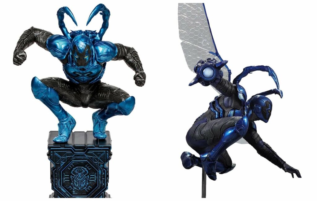 - McFarlane Toys – Statua in resina di Blue Beetle DC Direct ($249,99 – uscita 1 novembre) Realizzata in resina fusa a freddo con decorazioni e sculture di alto livello. Il logo di Blue Beetle funge da base della statua.