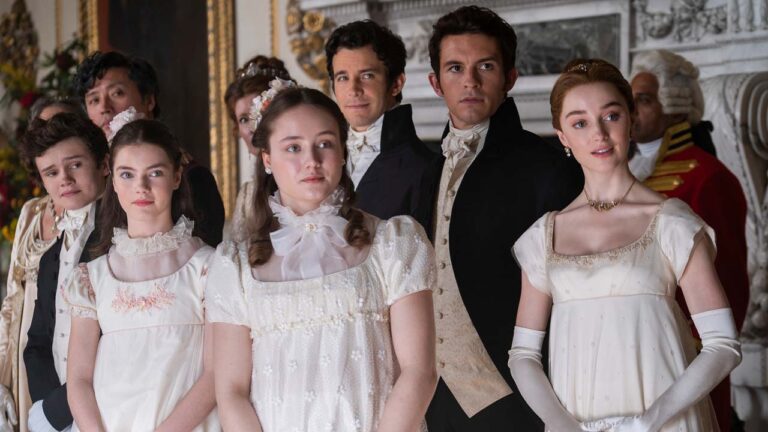 Bridgerton è una serie romantica, scandalosa e arguta che celebra l’eternità di amicizie durature, famiglie che trovano la loro strada e la ricerca di un amore che conquisti tutto. La serie vede la partecipazione anche di Adjoa Andoh (Lady Danbury), Lorraine Ashbourne (Mrs. Varley), Harriet Cains (Philipa Featherington), Bessie Carter (Prudence Featherington), Shelley Conn (Mary Sharma), Phoebe Dynevor (Daphne Basset), Ruth Gemmell (Violet Bridgerton), Florence Hunt (Hyacinth Bridgerton), Martins Imhangbe (Will Mondrich), Claudia Jessie (Eloise Bridgerton), Calam Lynch (Theo Sharpe), Luke Newton (Colin Bridgerton), Golda Rosheuvel (Queen Charlotte), Luke Thompson (Benedict Bridgerton), Will Tilston (Gregory Bridgerton), Polly Walker (Portia Featherington), Rupert Young (Jack), e Julie Andrews per la voce di Lady Whistledown nella versione originale in lingua inglese. La serie è ispirata ai romanzi di Julia Quinn.