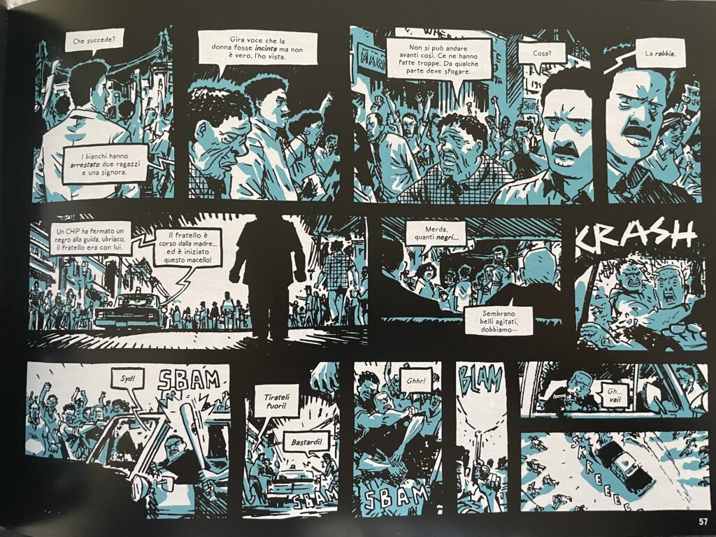 Come accennavo all’inizio, è la rabbia il motore principale di tutta la storia. Senza entrare in dibattiti sociali che meriterebbero maggior approfondimento, è innegabile che le persone di colore abbiano subito (e continuino a subire) forti discriminazioni. Ed è naturale che la rabbia accumulata prima o poi possa esplodere e portare a questi risultati. Così, un fatto che sembrerebbe piccolo, come l’assoluzione di quattro poliziotti, diventa invece la scintilla che scatena la rivolta popolare. Allo stesso modo, la rabbia è un sentimento che, se incanalato nel modo giusto, può portare non solo alla distruzione ma anche verso qualcosa di costruttivo.