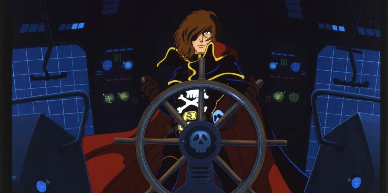 Spietato, idealista, leale e incorruttibile, Capitan Harlock è il pirata spaziale più famoso dell’animazione giapponese. Benda nera a coprire un occhio, cicatrice che gli attraversa il volto, un lungo mantello nero, stivali che anticipano il suo arrivo con passo leggero ma autoritario. Capitan Harlock è prima di tutto un personaggio nato a fumetti nel 1977 per mano di Leiji Matsumoto, che al corsaro dello spazio aveva in realtà dedicato più di un’opera, quelle dove il protagonista è conosciuto come il “proto-Harlock”. In un manga del 1972, Gun Frontier, ambientato nel vecchio West, Harlock fa per esempio la conoscenza con il giapponese Tochiro: colui che diventerà nella fenomenologia della serie il suo migliore amico, nonché il costruttore geniale della nave Arcadia. Il pirata diventa una star nel 1978 quando Toei dà vita alla celeberrima serie animata in 42 episodi diretta da Rintarō. Nell’anime l’Arcadia cambia colore rispetto al fumetto, un colore blu notte. Inoltre, per accentuare il tono drammatico e nostalgico della trama viene creato il personaggio di Mayu: la piccola è molto affezionata a Harlock e in più di un’occasione giocherà un ruolo centrale nell’affetto e nelle decisioni del pirata. Se in Giappone il corsaro spaziale occupa le pagine dei principali mensili specializzati in animazione e viene omaggiato da numerosi libri illustrati, in Italia la popolarità della serie si fa registrare anche grazie al successo della sigla cantata da La banda dei bucanieri (Fonit Cetra), scritta da Luigi Albertelli con Vince Tempera.