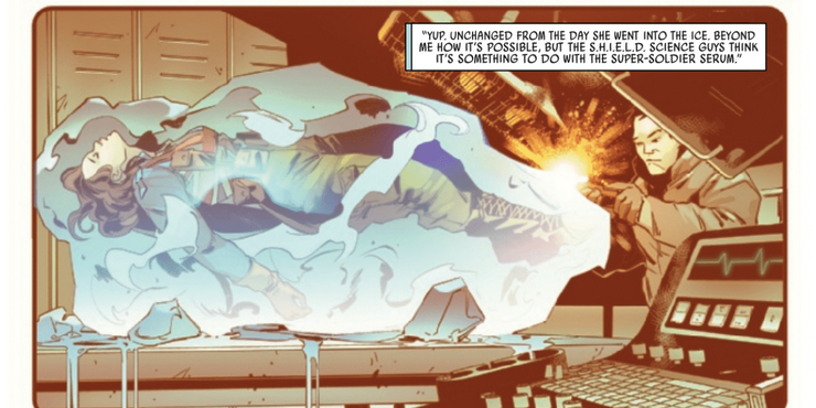 Peggy Carter ora ha la sua serie limitata di cinque numeri, e la sua origine è stata cambiata. In Captain Carter # 1 (di Jamie McKelvie, Marika Cresta, Erick Arciniega e Clayton Cowles), Peggy prende il siero al posto di Steve e, come Capitan America, viene successivamente avvolta nel ghiaccio. Dopo settant’anni, si risveglia in quello che sembra un mondo completamente nuovo, dato che gran parte della tecnologia e della società sono avanzate.