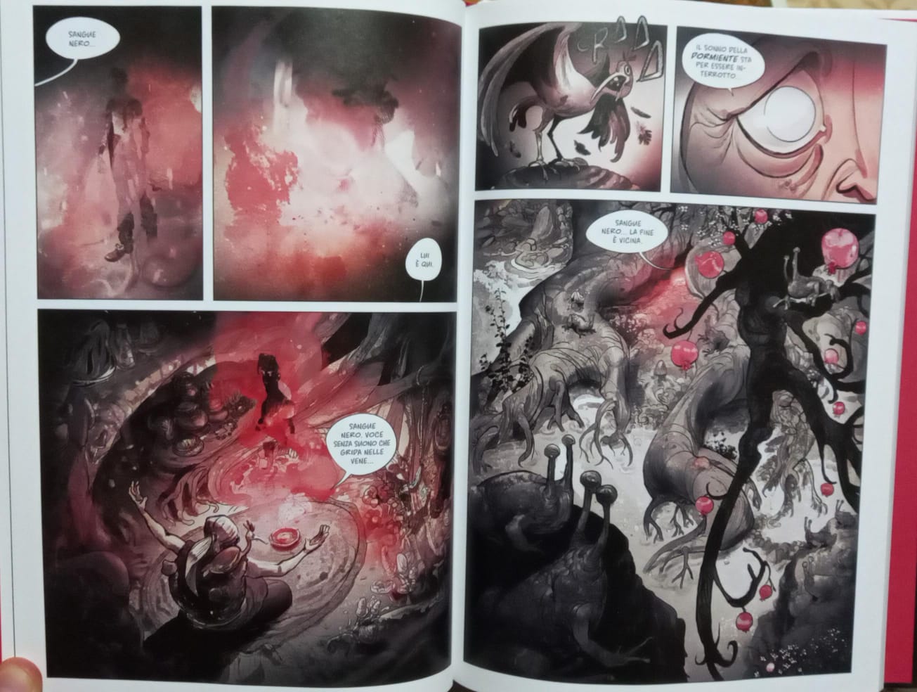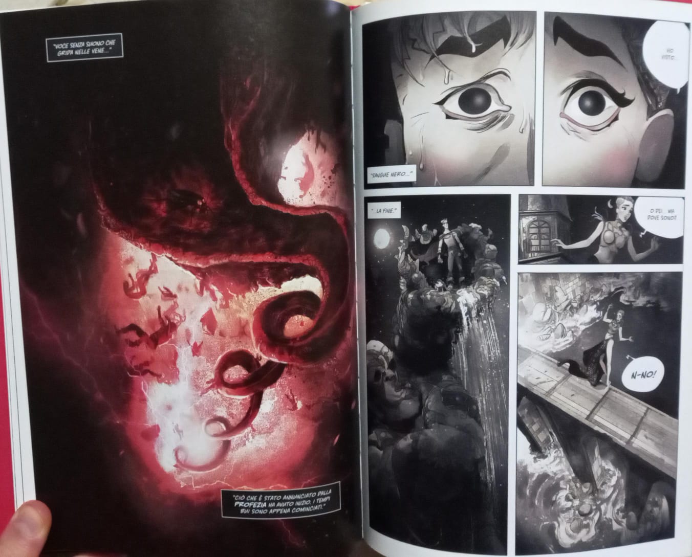 Alcune domande trovano risposta prima dell’epilogo di questo volume 1: Sangue Nero. Altre, siamo sicuri, troveranno compimento già nelle prime pagine del vol. 2 che attendiamo con ansia, fiduciosi di trovare altre tavole fantastiche ed altri segreti che verranno finalmente svelati.
