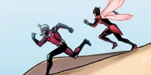 La copertina, per Damage Control #2, mostra Ant-Man e Wasp rimpiccioliti che scappano dalla bocca ignara di Gus, l’imbranato protagonista della serie che assomiglia a un personaggio di The Office, ma inserito nel mondo pieno di supereroi della Marvel.