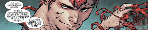 Dopo che lui e il suo ex simbionte si sono separati, Cletus Kasady lega con la sua casa d’infanzia, l’orfanotrofio St. Estes, in modo letterale in Marvel’s Carnage #8.