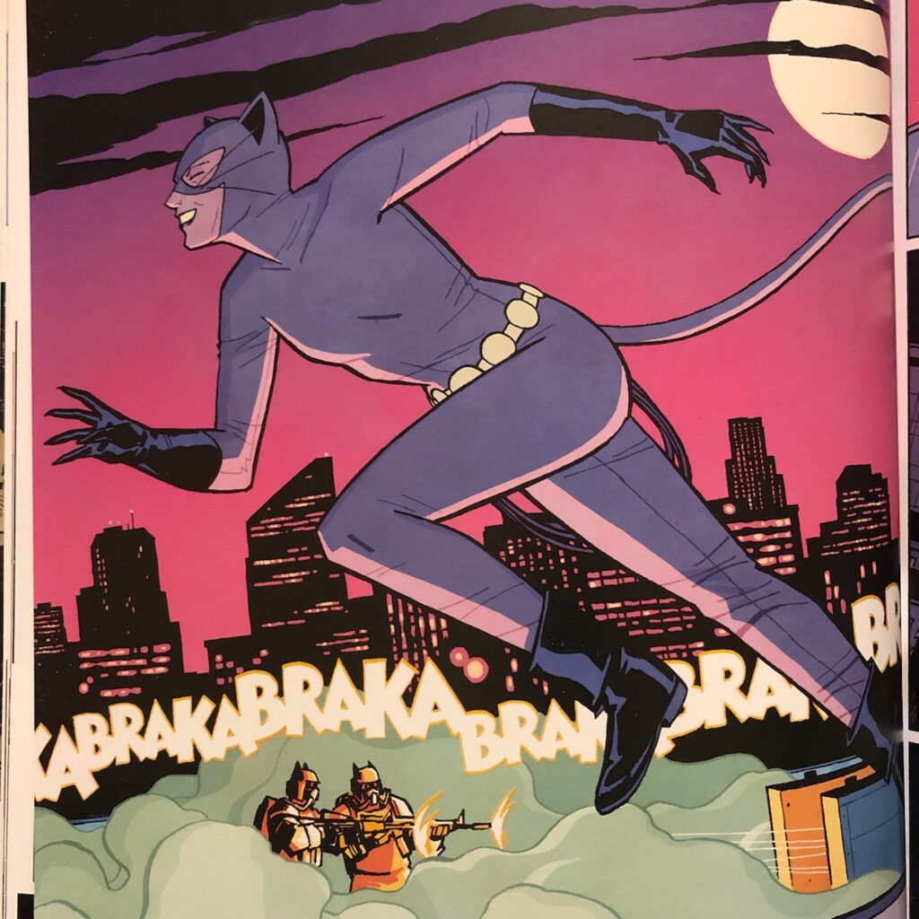 In effetti, Cliff Chiang ci presenta una Selina del tutto umana che si rende conto delle sue debolezze, di tutti gli acciacchi che sente e che la mettono a dura prova nel compiere quelle acrobazie che una volta erano il suo marchio di fabbrica. Una donna che inizialmente sembra sfiduciata ma che decide di tenere duro e non arrendersi prima di aver compiuto la sua missione.