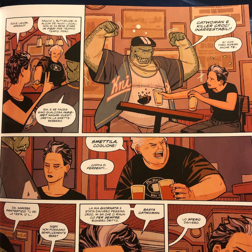 Senza svelarvi troppo, tra questi ci sono anche Barbara Gordon e un fantastico Killer Croc. L’ex Batgirl ha visto morire suo padre e ha abbandonato per sempre la carriera da supereroina, buttandosi in politica. Di lì a poco si prospettano, infatti, delle elezioni infuocate tra la sua fazione e quella del sindaco Harvey Dent. Dal canto suo, Croc ha ormai perso del tutto la grinta e la ferocia di un tempo e passa le sue giornate a lavorare come buttafuori e a bere in un bar.