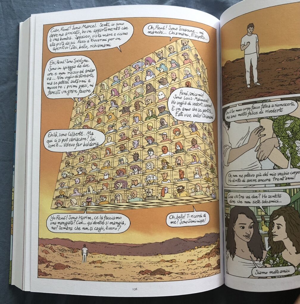 Pubblicato per la prima volta in Francia nel 2018 con il titolo Alt-Life, Ci vuole un’altra vita arriva in Italia per Rizzoli Lizard in un volume brossurato con un bell’effetto in rilievo in copertina. Come diceva Franco Battiato in Un’Altra Vita “non servono tranquillanti o terapie, ci vuole un’altra vita”. E, in effetti, i due protagonisti di questa storia, René e Josiane, sono proprio le cavie di un nuovo modo di vivere.