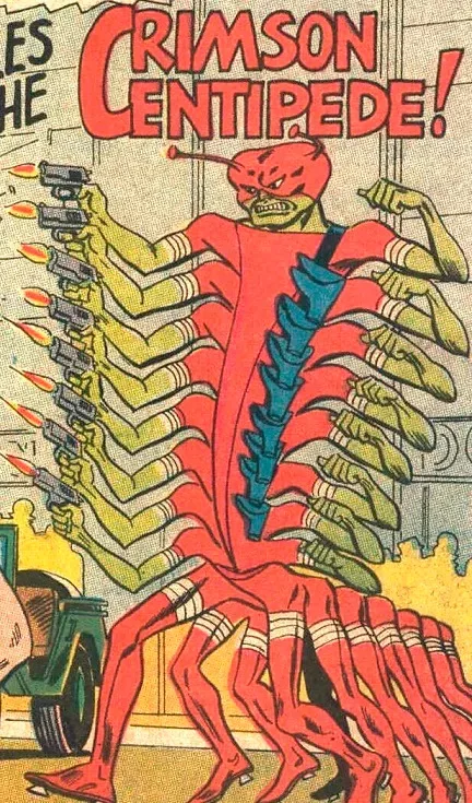 Sebbene sia meno conosciuto rispetto alla principale rogues gallery di Wonder Woman, il Crimson Centipede rappresenta uno dei suoi avversari più singolari. Apparso per la prima volta in Wonder Woman #169 del 1967, questa creazione di Ares è stata progettata appositamente per contrastare il messaggio di pace e armonia di Diana con il caos e la distruzione.