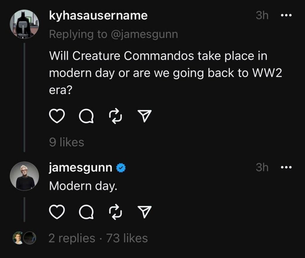 Gunn ha fatto la rivelazione a un fan su Threads, rivelando che la serie è “ambientata ai giorni nostri”, senza però fornire ulteriori dettagli o altro.