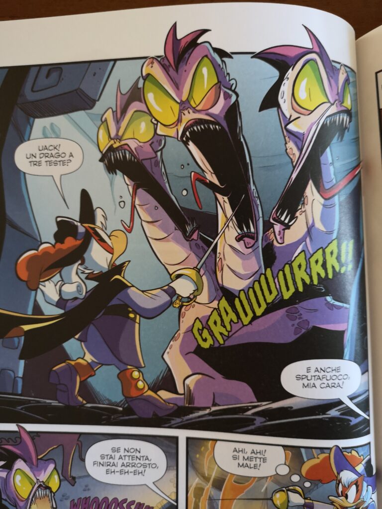 Il team di disegnatori e coloristi fa muovere i personaggi all’interno della sceneggiatura in maniera impeccabile, sempre secondo i dogmi di paperi e topi, ma c’è spazio anche per un po’ di sperimentazione. Questo fatto è dovuto al formato più grande di questo volume che si avvicina alle dimensioni di un albo americano.