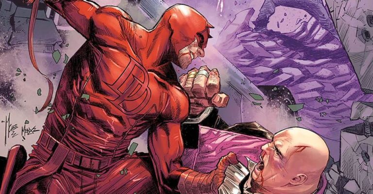Il disegnatore di Devil’s Reign, Marco Checchetto, ha pubblicato sul suo account Twitter la cover dell’imminente numero finale della serie limitata da lui curata. Qui vediamo una sanguinosa e brutale resa dei conti tra Daredevil e Kingpin. E mentre Matt Murdock e Wilson Fisk si scambiano colpi proibiti sulla cover, Luke Cage e Purple Man si sfidano sullo sfondo.