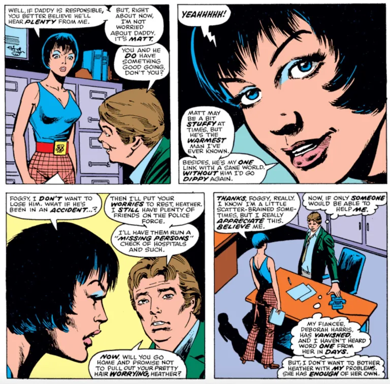 Dopo un periodo di separazione, la donna torna nella sua vita e i due arrivano perfino a un fidanzamento. Tuttavia, la relazione si sgretola quando Matt si riavvicina alla sua ex, Elektra. Heather, in un momento di disperazione e ubriachezza, rivela l’identità segreta di Daredevil a un uomo pericoloso, scatenando una serie di eventi che mettono a rischio la vita di Matt.