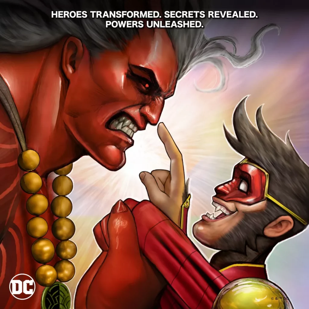 Secondo il comunicato stampa, Monkey Prince si unisce alla mischia dopo che Damian Wayne ha lanciato una richiesta di soccorso a tutti gli eroi rimasti nel loro stato eroico originale, affinché si rechino alla Sala della Giustizia e contribuiscano a salvare il mondo. Monkey Prince risponde alla chiamata insieme a eroi come Blue Beetle, Power Girl, Cyborg, Batman e altri ancora – ma come possiamo vedere dalle immagini teaser, non tutti rimarranno a lungo non trasformati dalle pericolose emissioni di Lazarus Volcano.