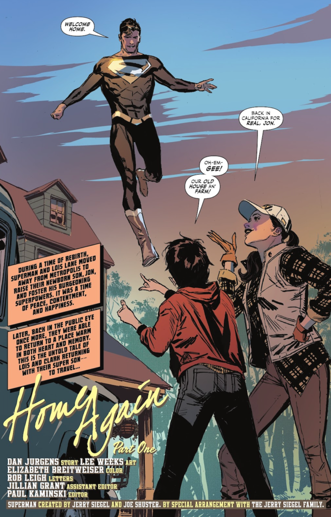 Il backup di Action Comics #1051 si apre con Clark, Lois e il giovane Jon che tornano alla fattoria in cui vivevano durante Superman: Lois e Clark, con Clark che indossa la tuta scura che sfoggiava allora. Jon chiede a suo padre: “Perché il vestito nero?” e Clark risponde: “Diciamo che tua madre ha fatto i bagagli”. Mentre Lois aveva già rivelato in Superman: Lois and Clark #4 che il marito le è sempre piaciuto vestito di nero, nel nuovo sequel dice a Jon e Clark: “È storicamente accurato e, cosa ancora più importante… très sexy”.