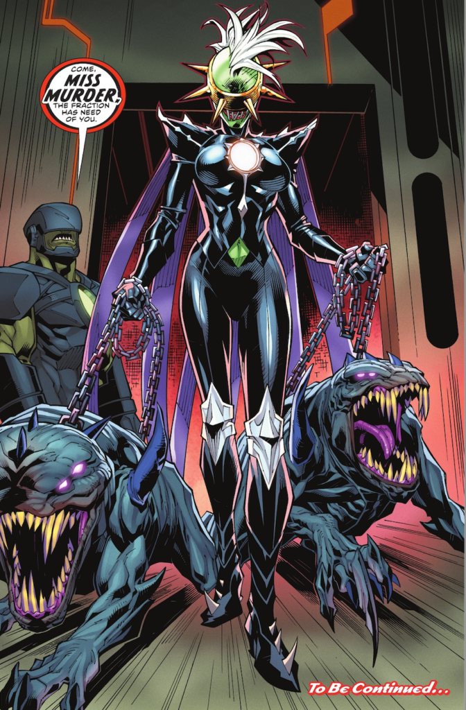Prima che Miss Murder appaia, uno dei soldati di Fraction dice: “Liberate questa… cosa che abbiamo catturato nel mondo oscuro”, indicando che proviene dal Multiverso Oscuro. Tuttavia, ha delle differenze rispetto al Batman che ride. Come ad esempio il fatto che lega le creature mostruose a delle catene, al contrario del Batman malvagio che usa i Robin. Poiché ha la pelle verde e la si vede fluttuare sulla copertina principale di The Flash #791 dell’artista Taurin Clarke. È possibile che Miss Murder sia una versione di Miss Martian, un eroe marziano che possiede il volo e attributi simili.